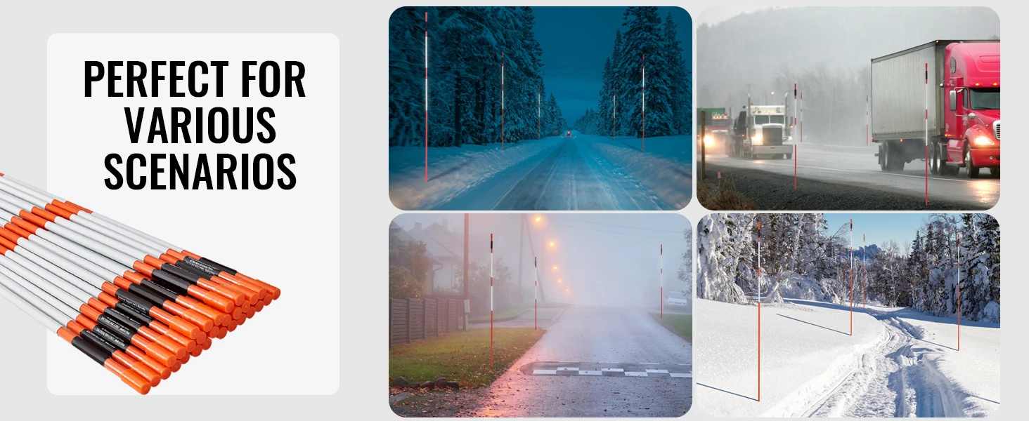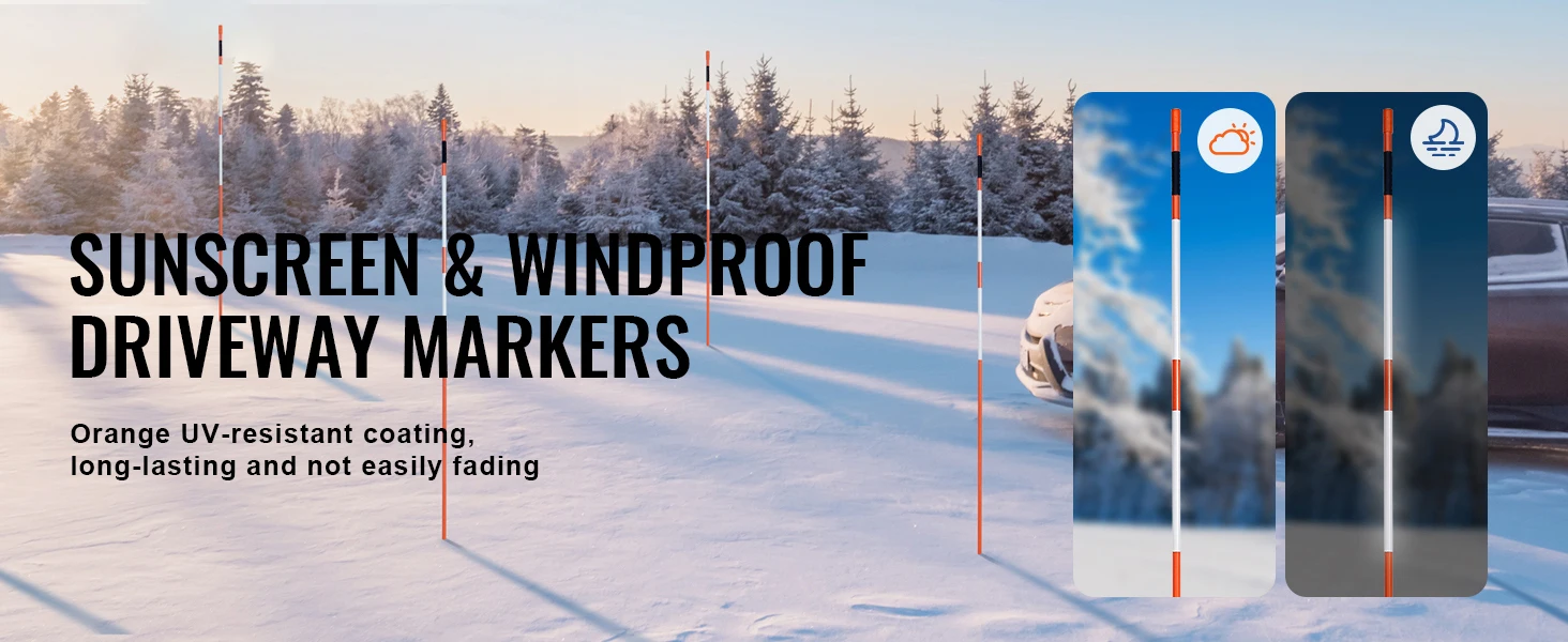 • High-Quality Material: The orange driveway stakes are made from non-alkali fiberglass, making them lightweight and strong with greater flexibility. They can withstand heavy snow and quickly rebound to their original shape, ensuring long-term use even in rainy and snowy conditions.
