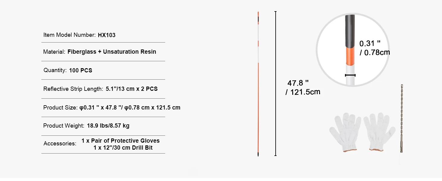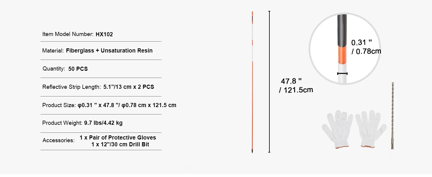 • Sturdy and Easy to Install: Each fiberglass marker is designed with a cap and pointed end to insert into any type of ground easily. The included gloves protect your hands from frostbite and scratches. The steel drill bit makes it easy to drill even in hard, frozen soil, ensuring a secure and sturdy installation without the need for a hammer.